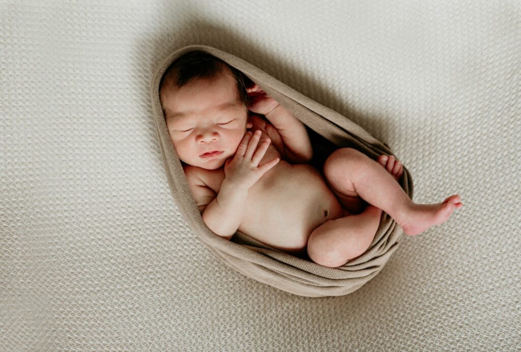 L’idéal est de réaliser la séance entre le 5e et le 15e jour après la naissance, lorsque votre bébé dort encore beaucoup et accepte plus facilement les petites poses.